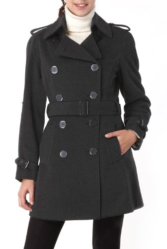 | Chic, double-breasted trench coat is detailed with a notched collar and slant pockets. Belts accent the waist and cuffs. ...Read
