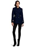 | Stunning pea coat from via spiga, this double breasted pea coat in mixed media is perfect for dressing up, turn heads as you wear this leatherette/wool combo from day to night, no detail has been overlooked, the back features slimming curved seaming details, an attached back belt, and flirty pleats, a crisp large notch collar lapel sets a sexy tone for this 28 inch body, gorgeous set in panels in our dry cleanable leatherette adorn the shoulders and add to the pocket flap details, this will surely be a favorite for seasons to come ...Read